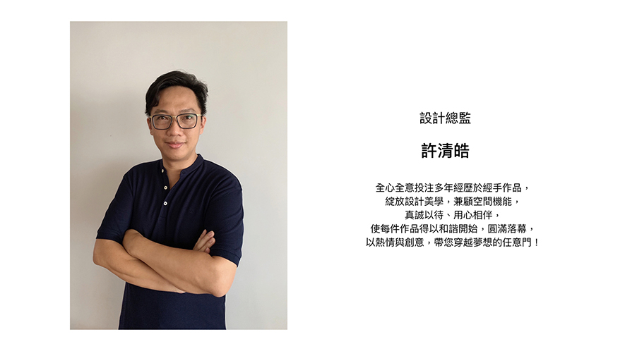 清筑設計 許清皓 設計總監 總是全心投入每件作品,透過與客戶真誠密切的溝通,了解每項需求,並傾注自身的美學眼光、源源不絕創意及熱忱,積極運用不同設計手法、素材,將業主理想的場域帶來現實,彷彿打開一扇通往夢想的任意門!這一年中,他的作品斬獲眾多國際榮耀,現在就讓我們一同來回顧他的精彩表現!