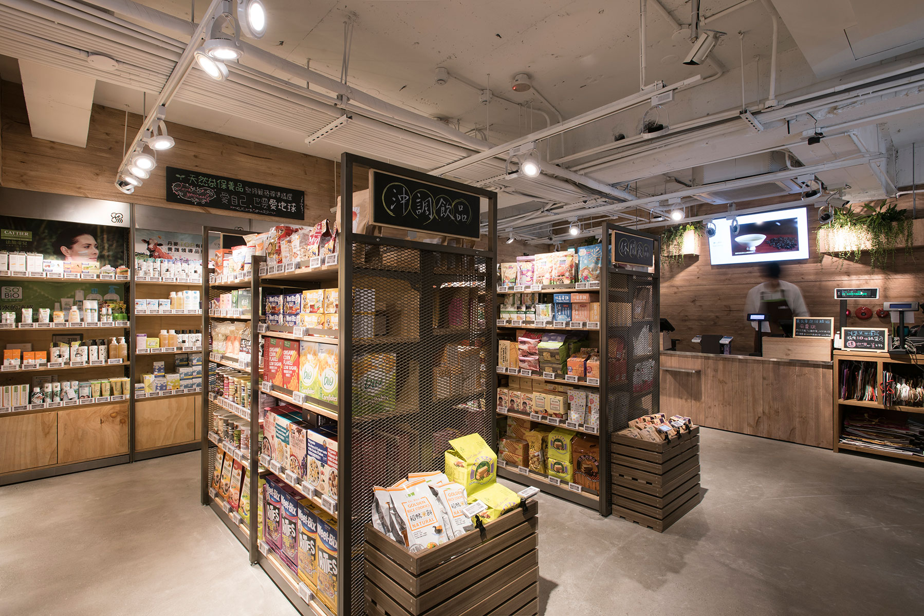 健康與環保理念,結合在地小農、推廣友善農法,提供無毒、有機、安心食材;提倡綠色消費的概念,提供裸賣等商品,減少包材,使用二手紙袋、電子標籤等,致力於無紙化的環保店鋪;別於一般超市設計於入口設置咖啡吧台,咖啡、茶飲、烘焙瀰漫香氣,大量無包裝蔬果與裸賣雜糧真實觸及挑選方式,選擇個人所需,結合視覺、嗅覺、味覺、觸覺、聽覺的五感體驗,看似時空倒流的買賣方式,現代生活的返璞歸真。
